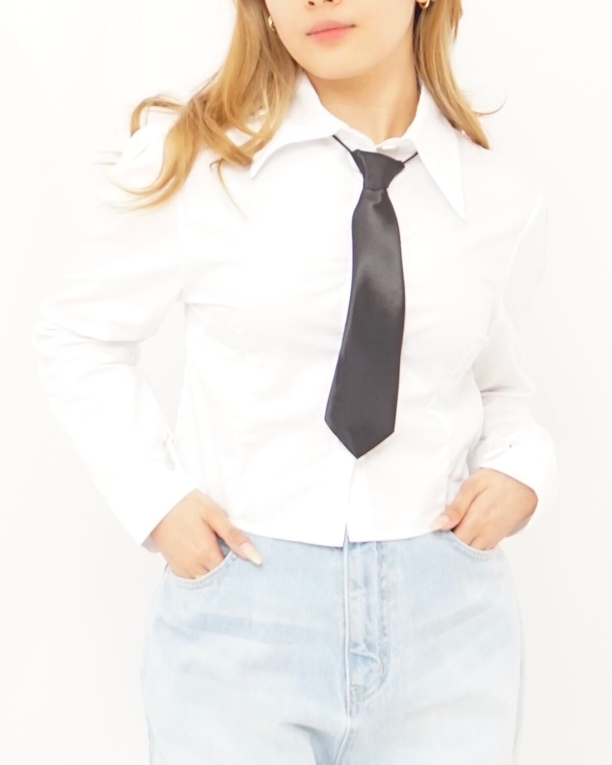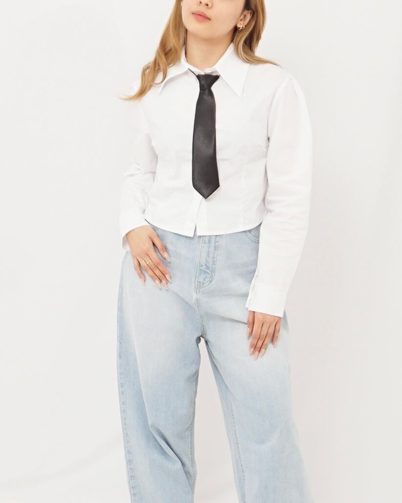 今流行のショート丈のシャツとネクタイがセットになったアイテム。