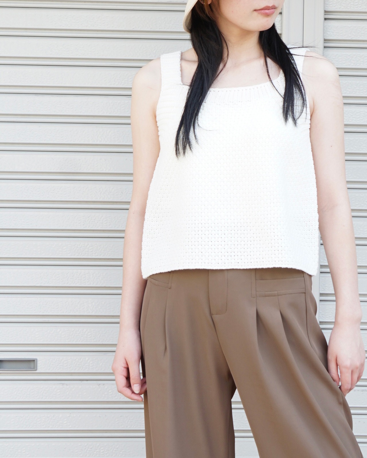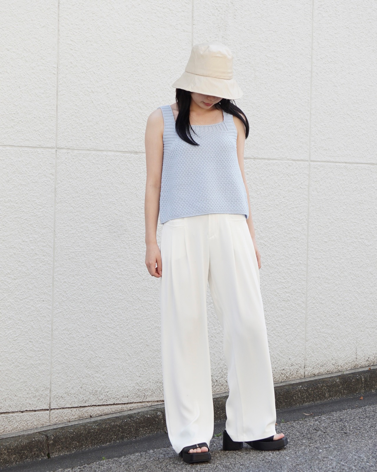 今シーズンポイントの短めの着丈でパンツスタイル、スカートスタイルどちらにも合わせやすいアイテムです。